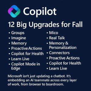 Microsoft just dropped 12 major updates for Copilot, turning it from an assistant into a true AI work companion. (VentureBeat, Oct 2025)
